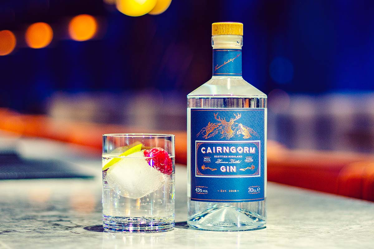 Cairngorm Gin is distilled using juniper, cloudberries, elderflower and Caledonian pine, partnered with coriander seed, orris root, sweet orange peel, angelica and kaffir lime. These are distilled along with fresh water from the River Spey, which Jack collects by hand. The gin is described as a wonderfully refreshing aromatic gin. This balanced infusion of botanicals and Highland Mountain water results in a floral, fruity gin with subtle earthy tones.