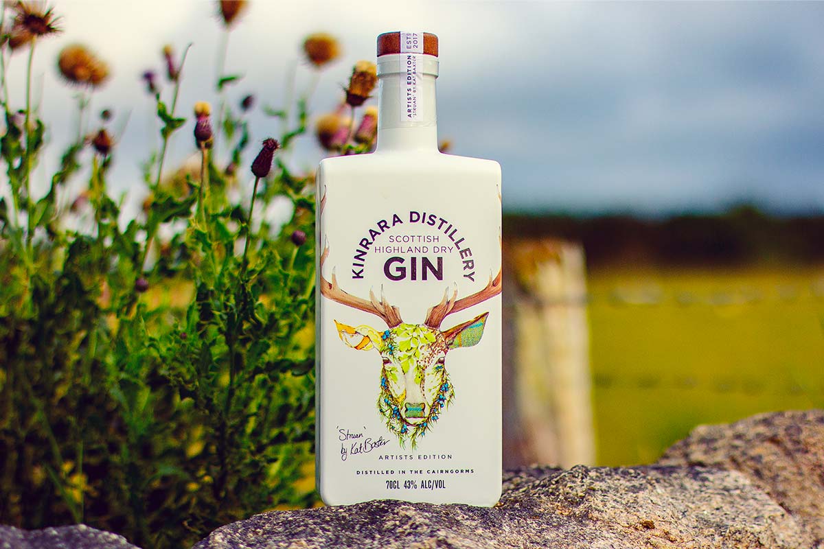 Set in the vast and rugged setting of the wild Scottish Cairngorms National Park, a whitewashed converted steading is home to the Kinrara Distillery. Featuring traditional copper pot stills, bottling and packing facilitates, all production takes place on-site at the distillery. With a tasting room available for tasting events adorned with some of the artwork featured on the artists edition gins, the distillery is a true highland home. The distillery is part of the Kinrara Estate, which means the team have access to a variety of local botanicals that grow wild on the estate plus an abundance of fresh water direct from the estate.
