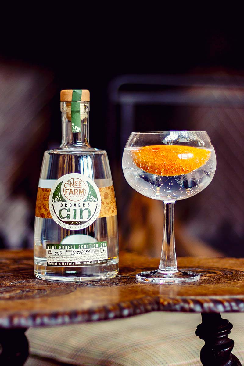 The first gin from The Wee Farm Distillery takes its name from Scotland’s Drovers. Drovers Gin was created as a tribute to the many hardy Drovers and Farmers who over the centuries have helped Scotland build a reputation for fantastic livestock and producing the very best quality food. Drovers Gin was created with food pairing in mind and contains red peppercorns and allspice, two botanicals which compliment and work well alongside steak. Some of the other botanicals in Drovers Gin, including Thistle and Heather, are what Drovers would have found when foraging on foot.