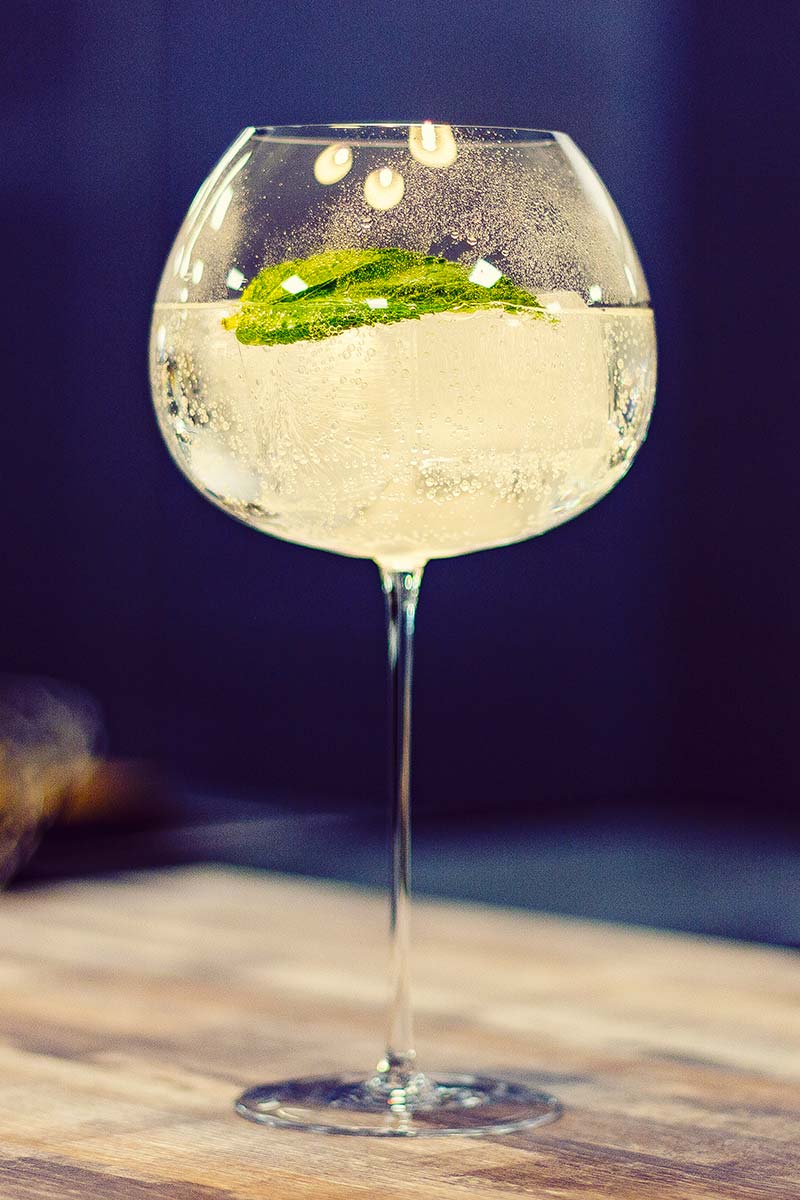 A sprig of fresh mint, tonic and ice.